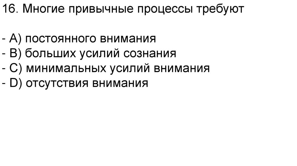 16. Многие привычные процессы требуют- A) постоянного внимания