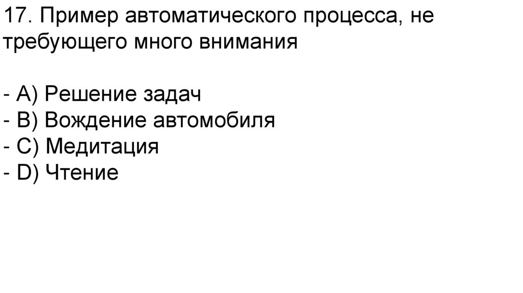 17. Пример автоматического процесса, нетребующего много внимания