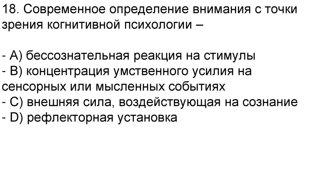 18. Современное определение внимания с точкизрения когнитивной психологии –