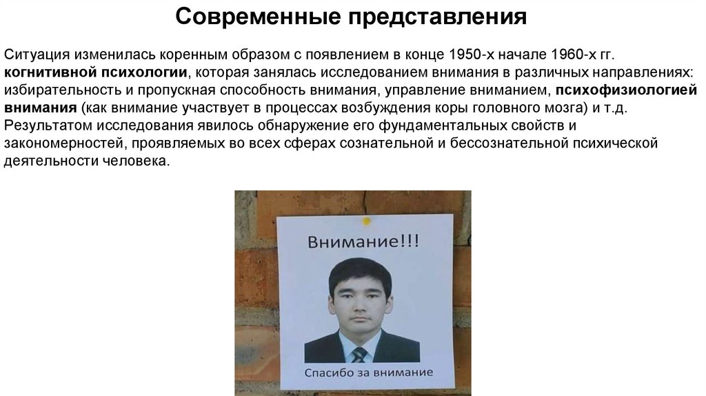 когнитивной психологии, которая занялась исследованием внимания в различных направлениях: