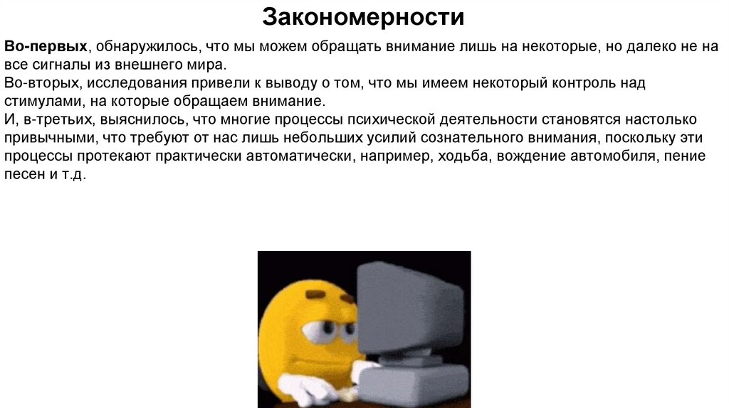 ЗакономерностиВо-первых, обнаружилось, что мы можем обращать внимание лишь на некоторые, но далеко не на