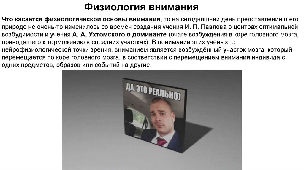 внимания (как внимание участвует в процессах возбуждения коры головного мозга) и т.д.