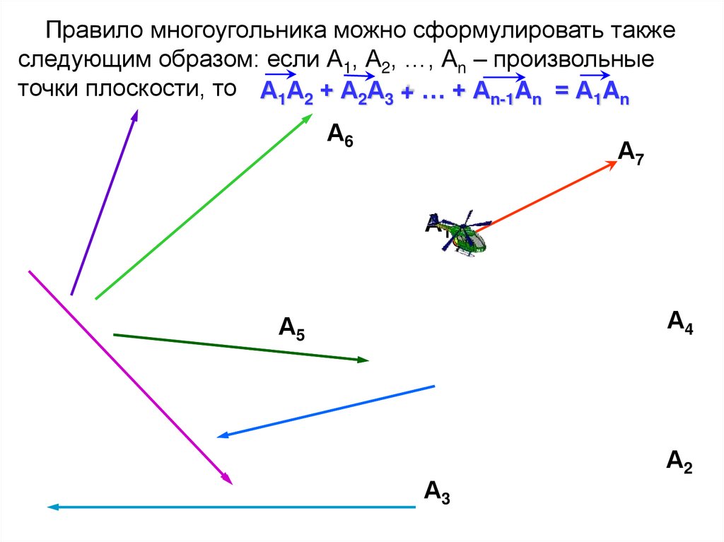 Правило многоугольника можно сформулировать такжеследующим образом: если А1, А2, …, Аn – произвольные