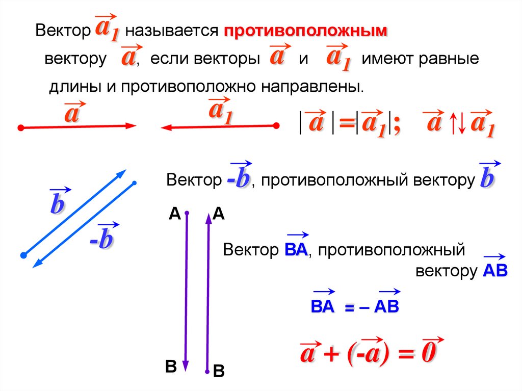 a1 называется противоположнымвектору a, если векторы a и a1 имеют равные