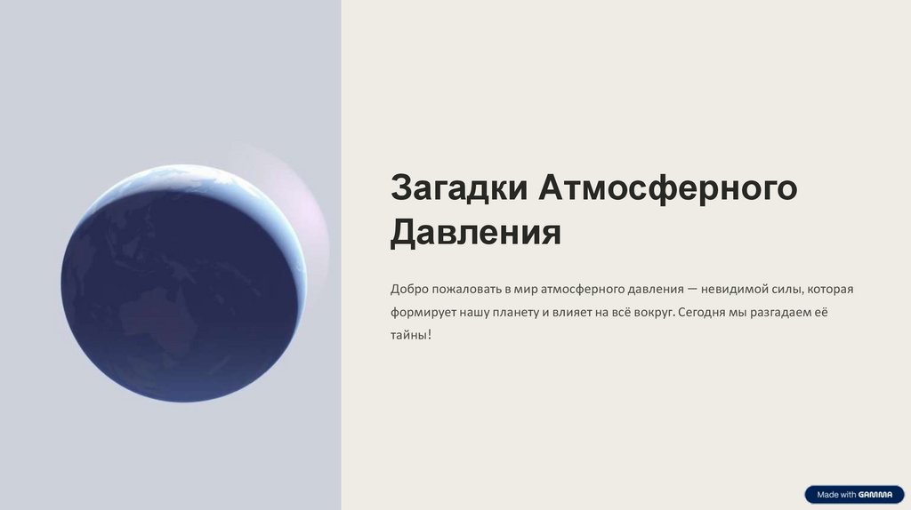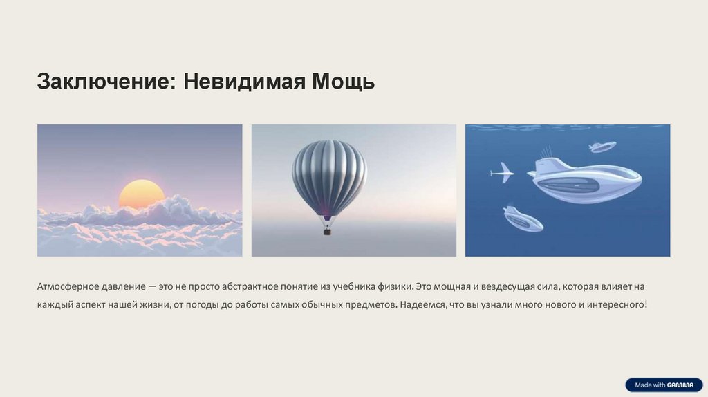 Заключение: Невидимая МощьАтмосферное давление — это не просто абстрактное понятие из учебника физики. Это мощная и вездесущая сила, которая влияет на