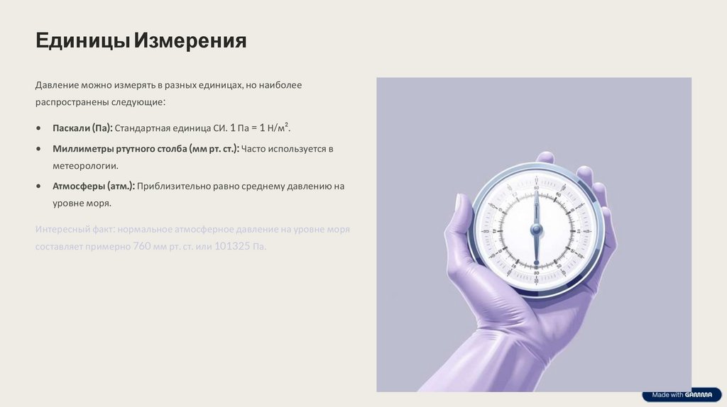 Единицы ИзмеренияДавление можно измерять в разных единицах, но наиболее
