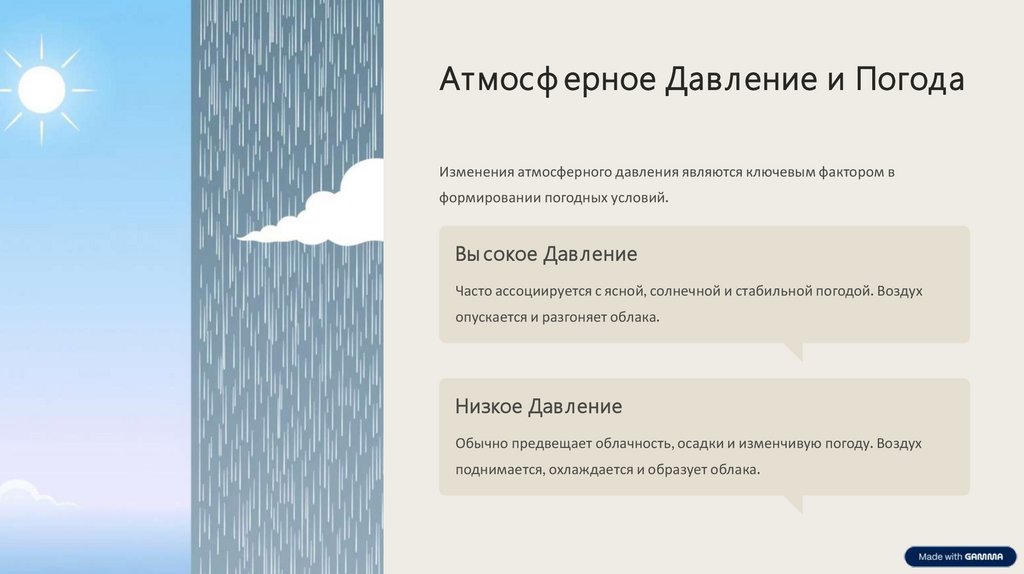 Атмосф ерное Давление и ПогодаИзменения атмосферного давления являются ключевым фактором в