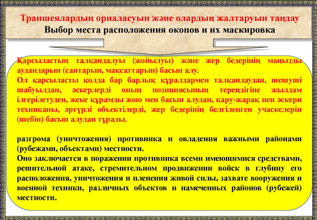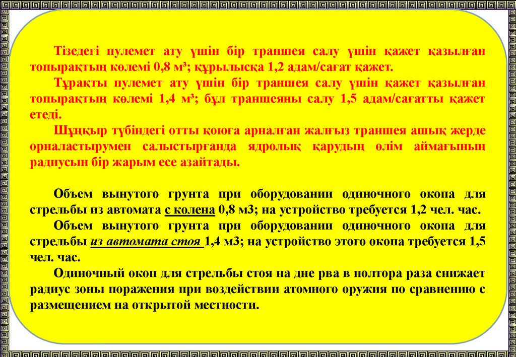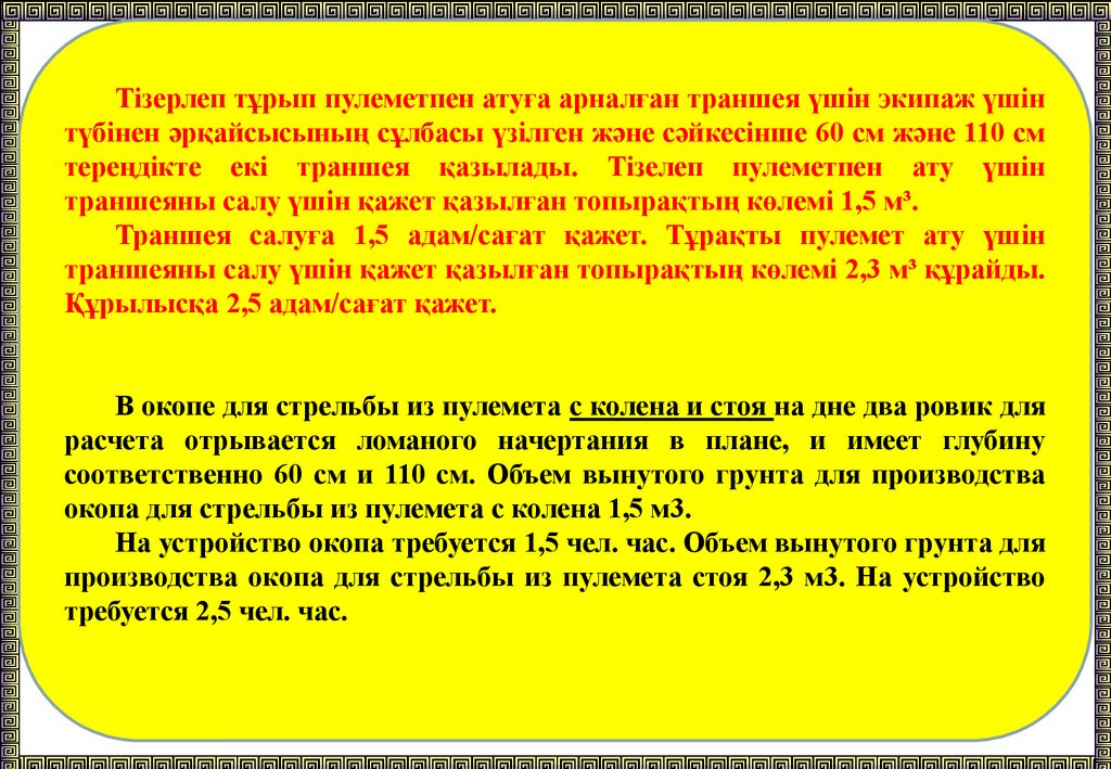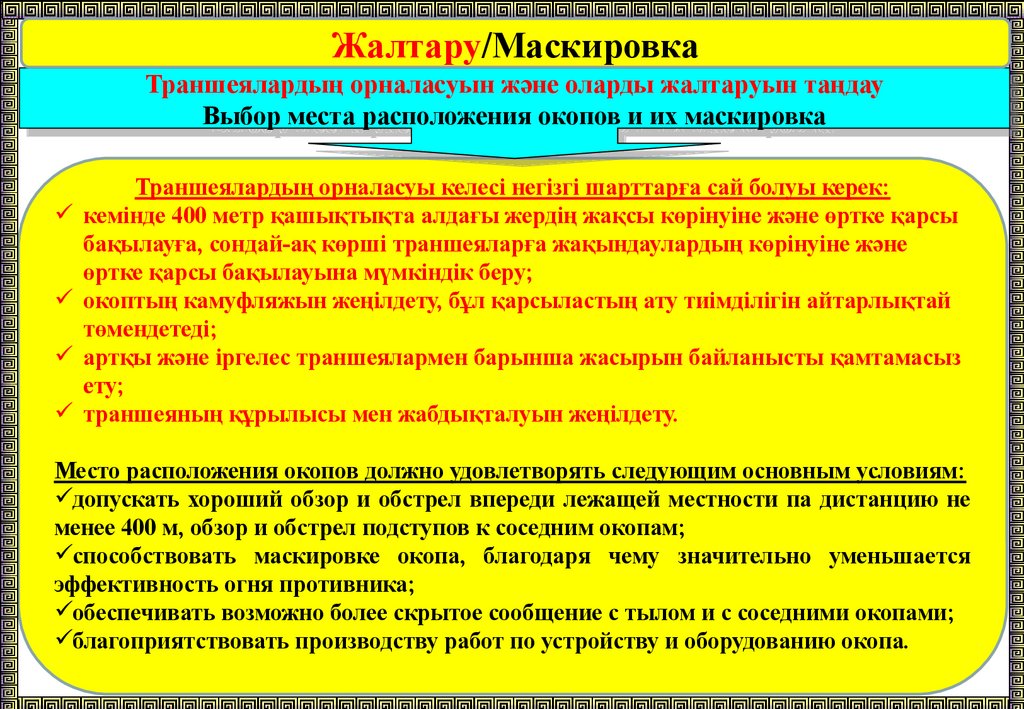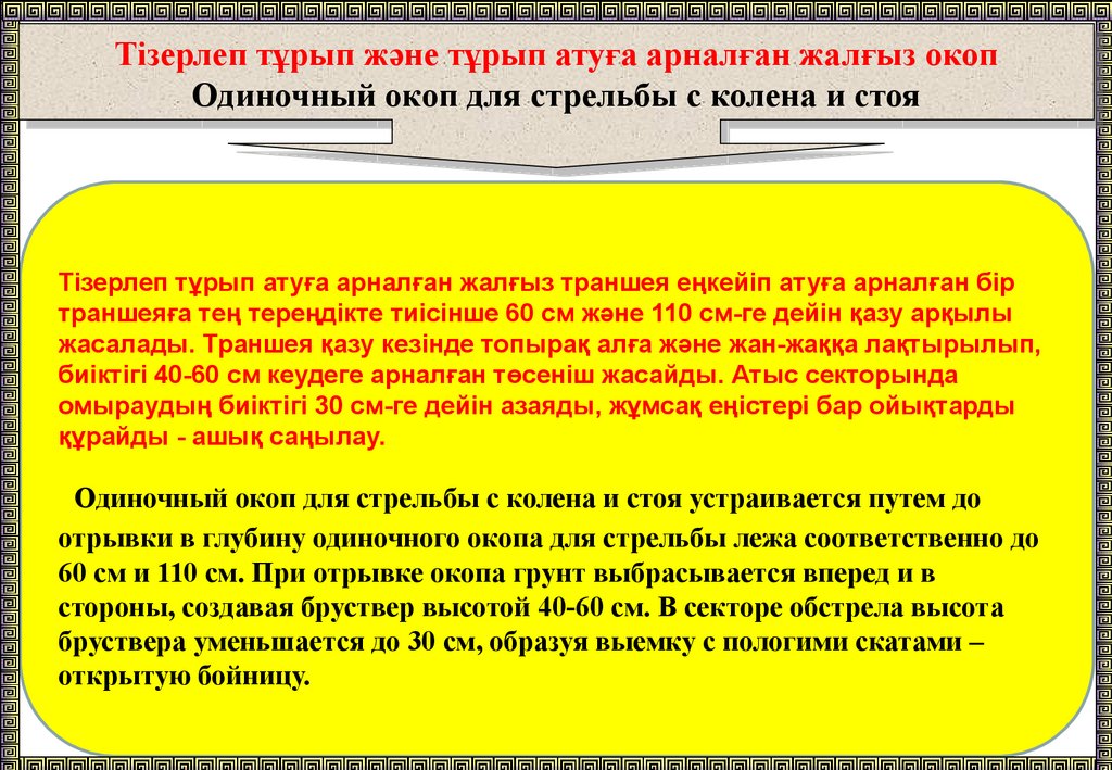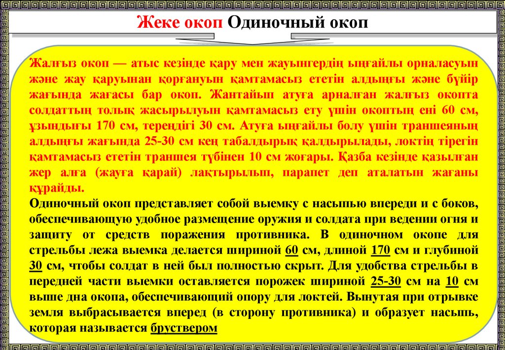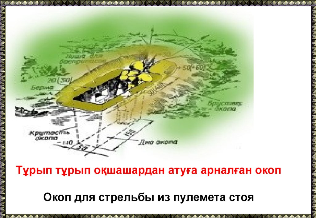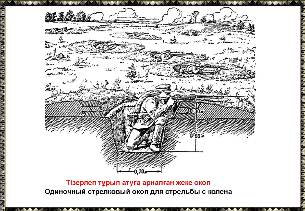 солдаттың толық жасырылуын қамтамасыз ету үшін окоптың ені 60 см,