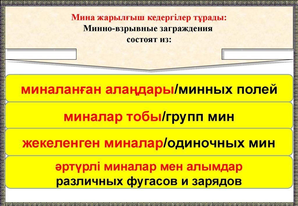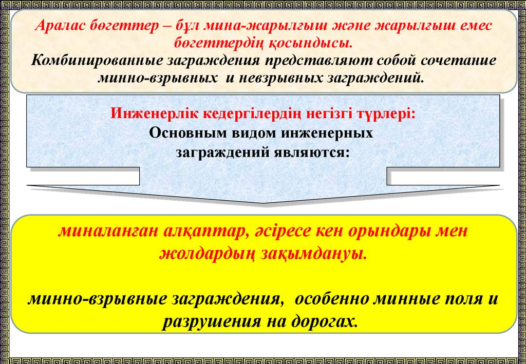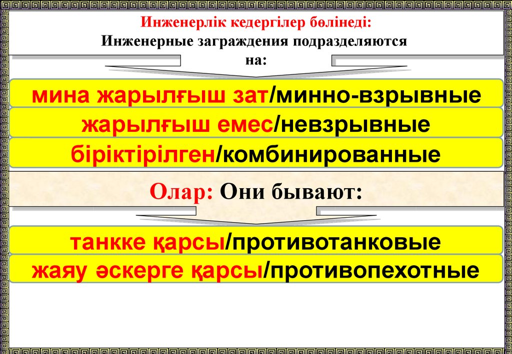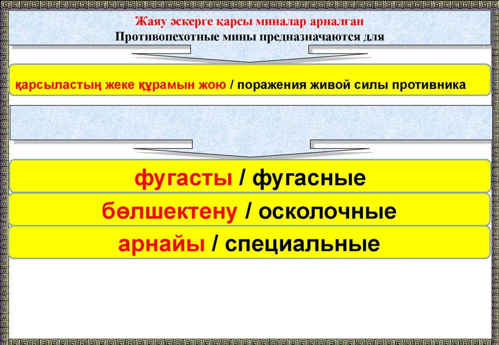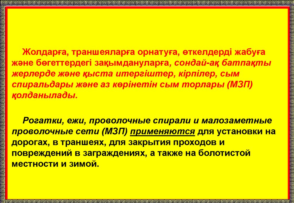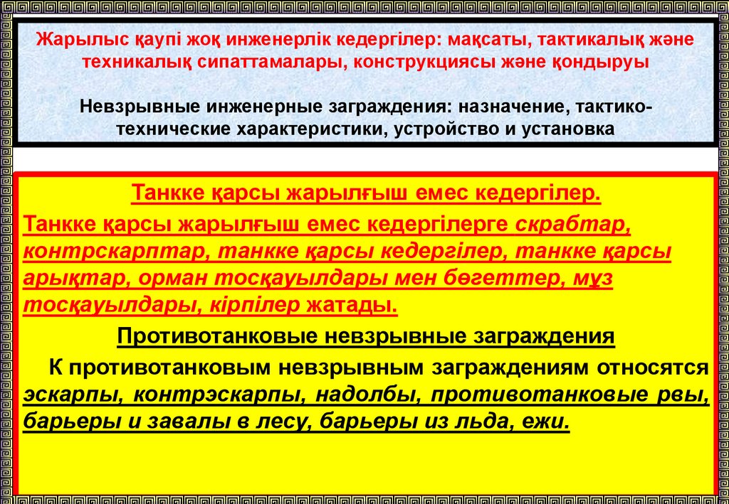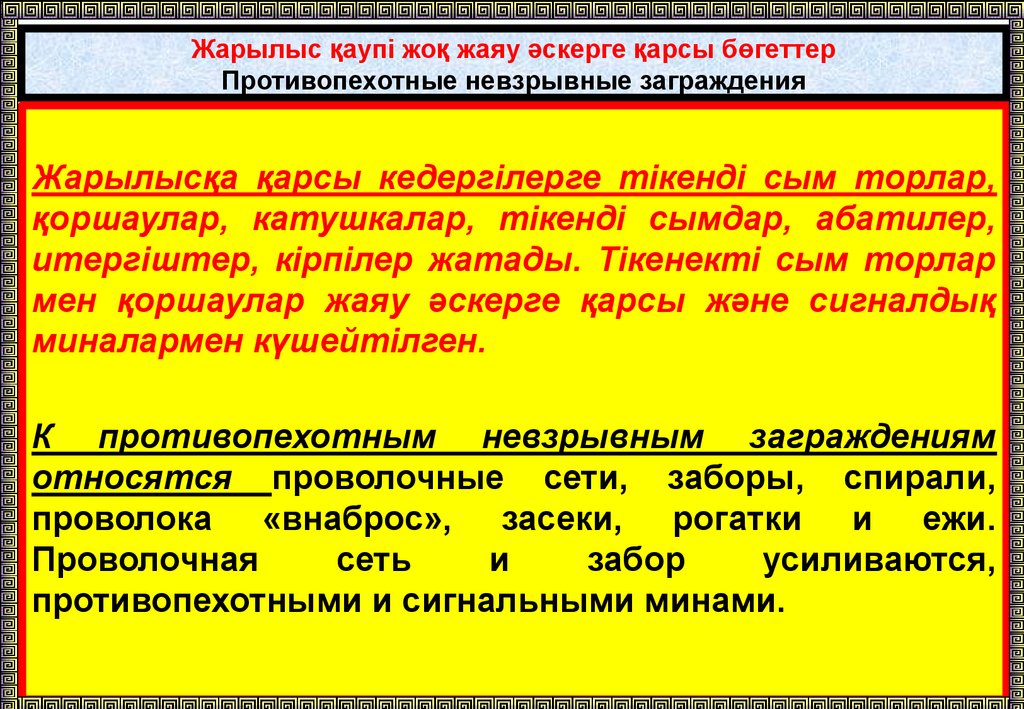 Жарылыс қаупі жоқ жаяу әскерге қарсы бөгеттерПротивопехотные невзрывные заграждения