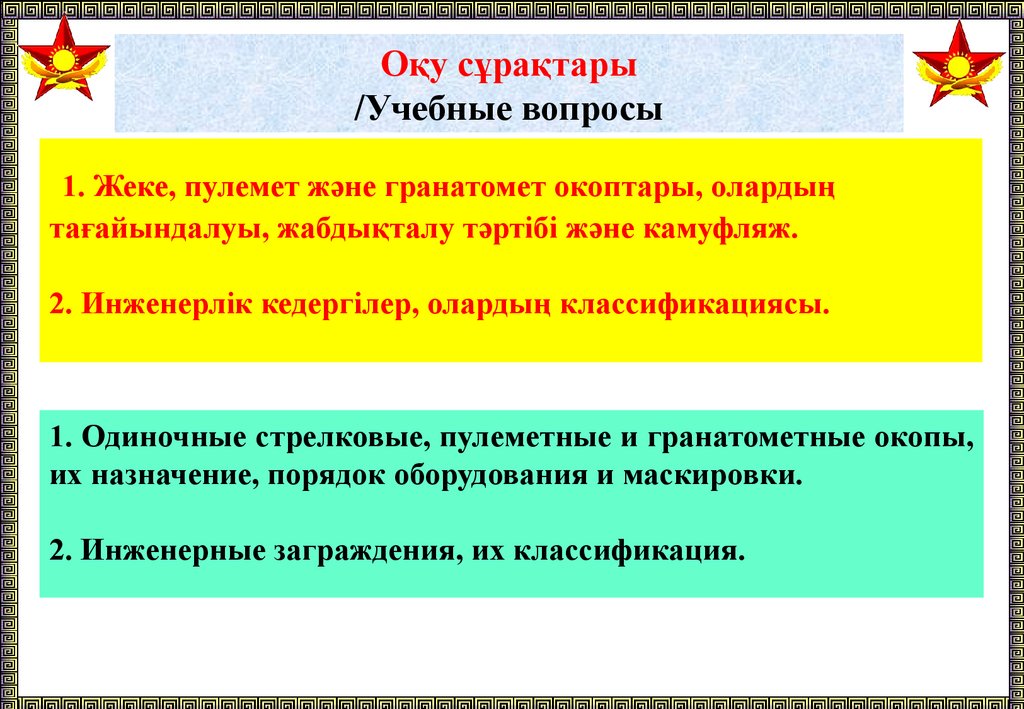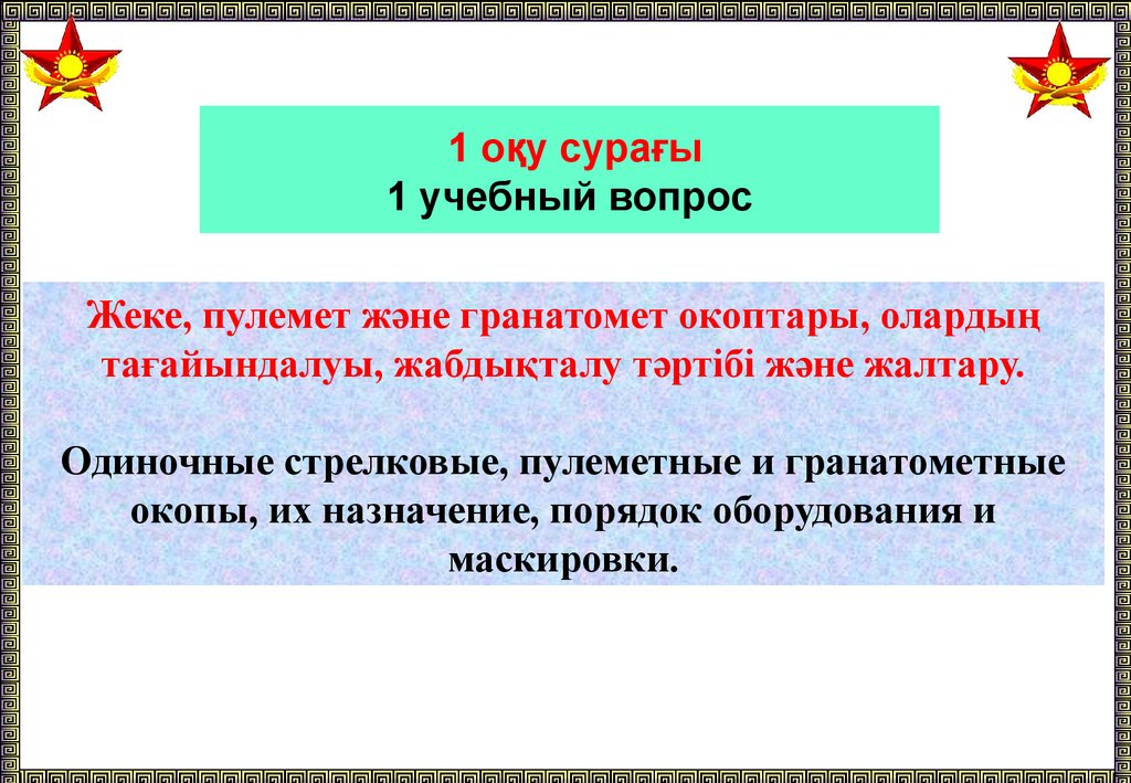 1. Жеке, пулемет және гранатомет окоптары, олардың