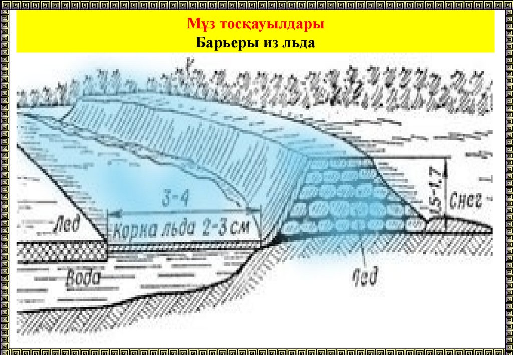 арықтар, орман тосқауылдары мен бөгеттер, мұз