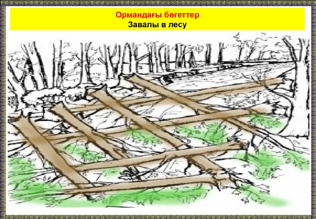 барьеры и завалы в лесу, барьеры из льда, ежи.