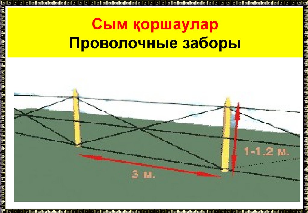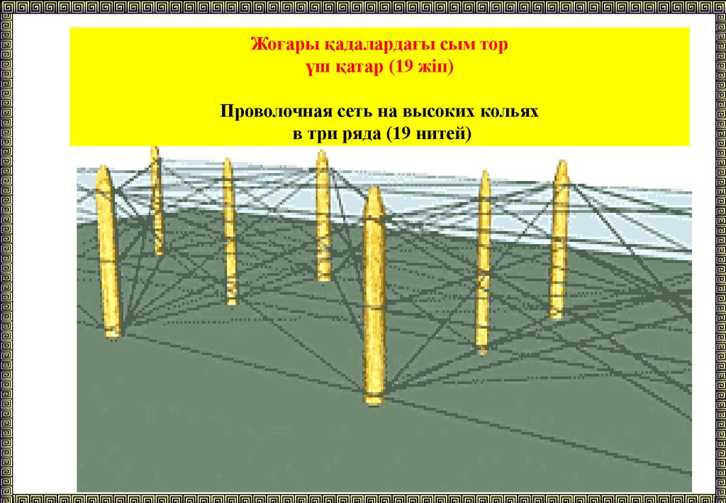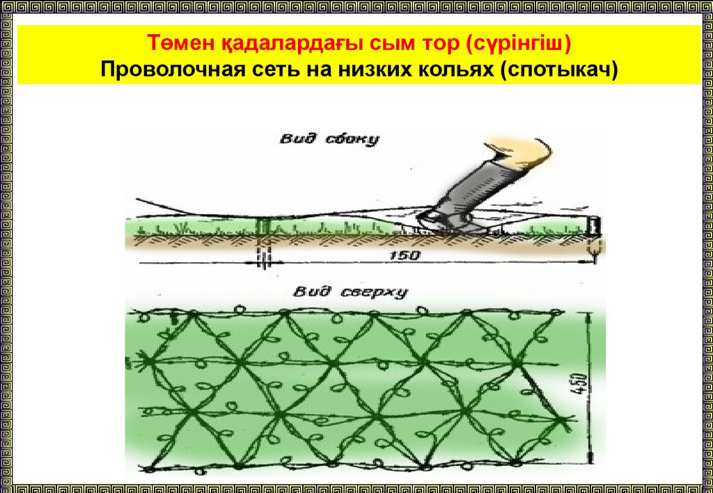 Төмен қадалардағы сым тор (сүрінгіш)Проволочная сеть на низких кольях (спотыкач)