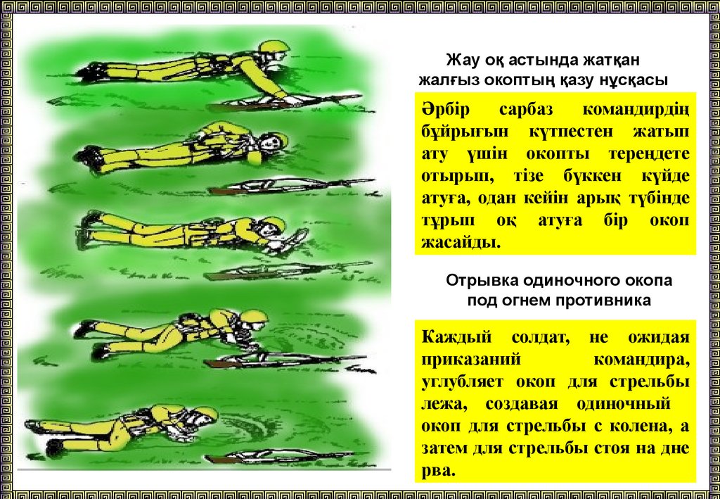 Жау оқ астында жатқанжалғыз окоптың қазу нұсқасы