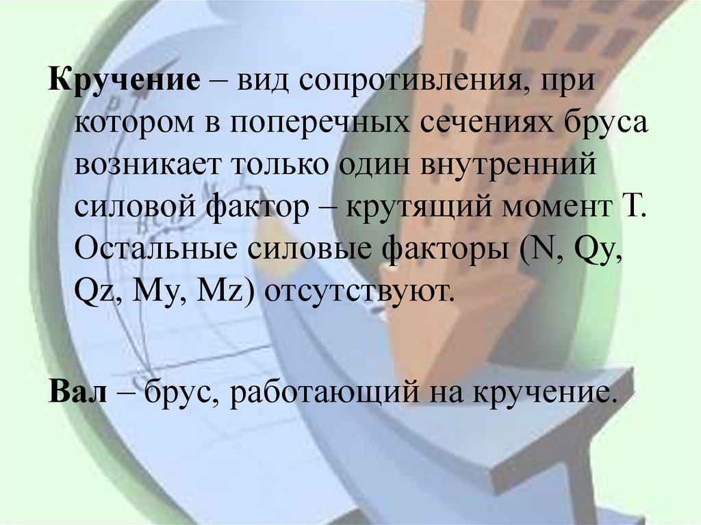 Кручение – вид сопротивления, прикотором в поперечных сечениях бруса