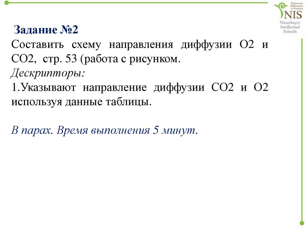 Задание №2Составить схему направления диффузии О2 и
