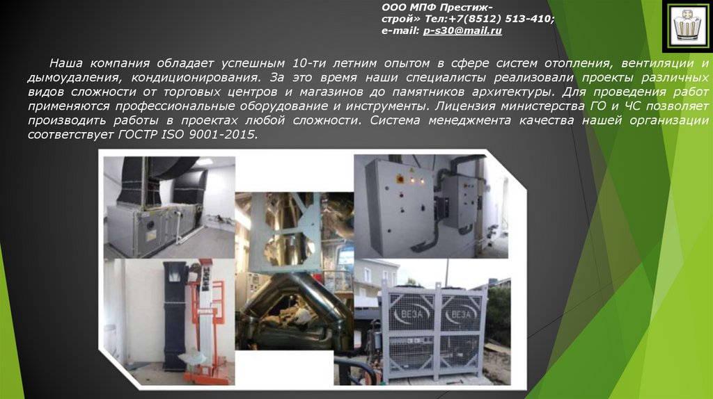 дымоудаления, кондиционирования. За это время наши специалисты реализовали проекты различных