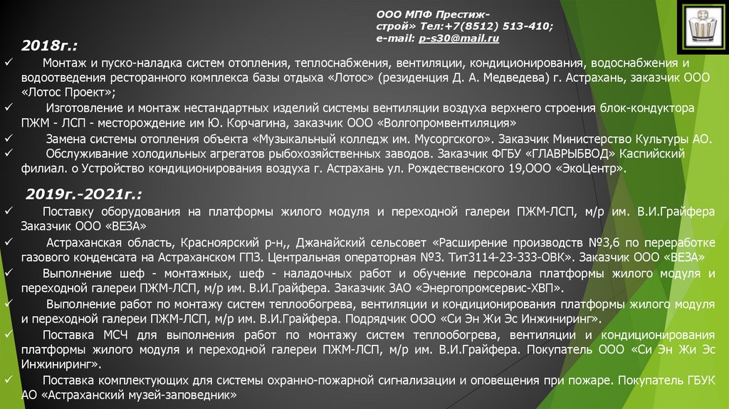 2018г.:ООО МПФ Престижстрой» Тел:+7(8512) 513-410;