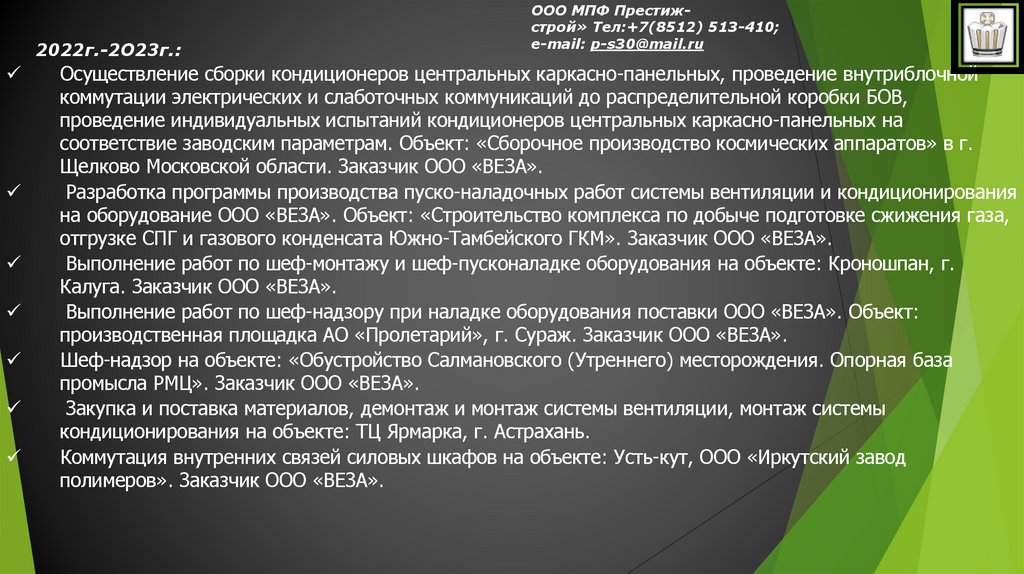2022г.-2О23г.:ООО МПФ Престижстрой» Тел:+7(8512) 513-410;
