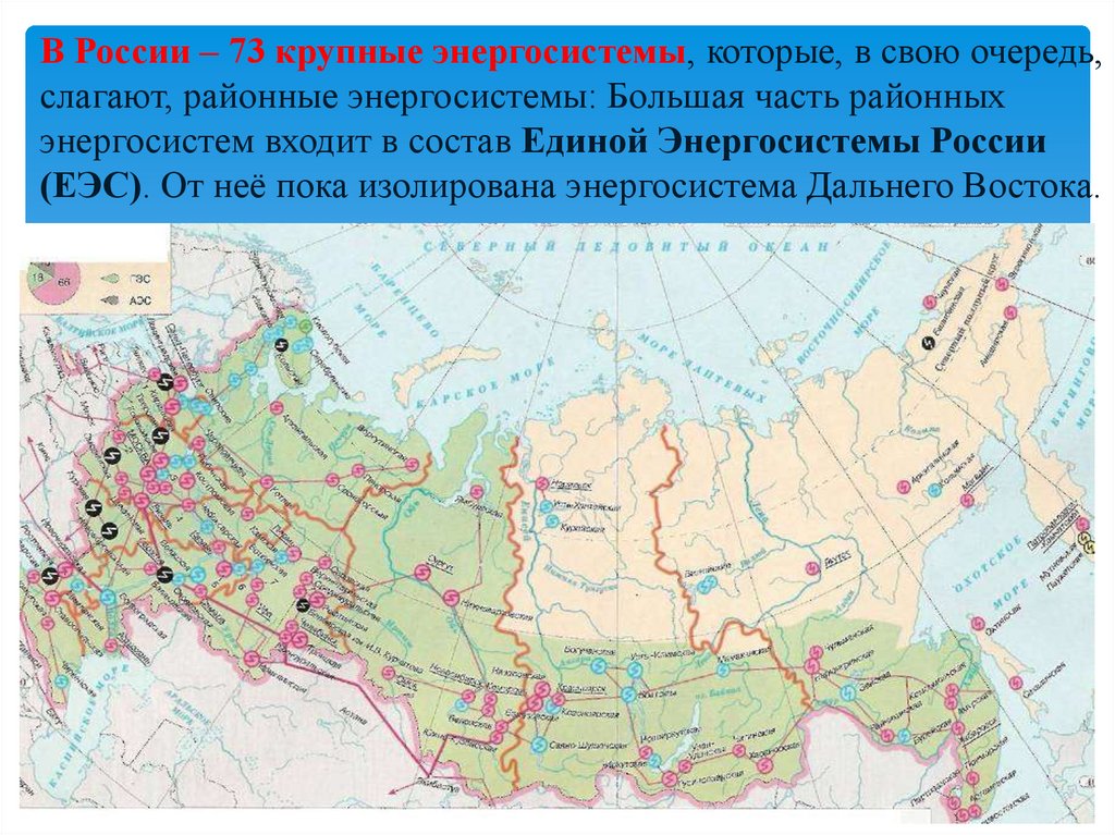 В России – 73 крупные энергосистемы, которые, в свою очередь,слагают, районные энергосистемы: Большая часть районных