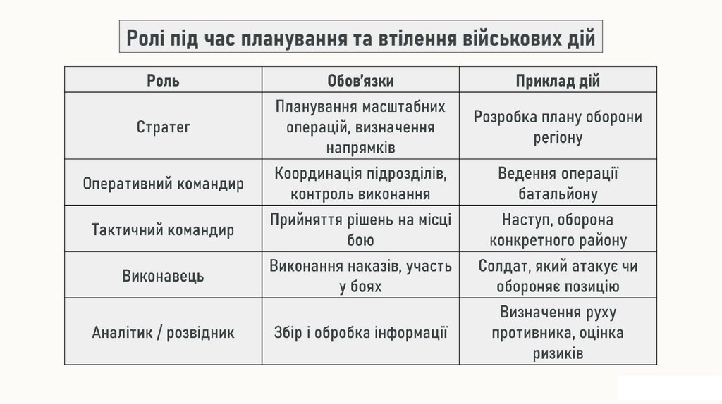 бойового духу. Командир приймає оперативні рішення, адаптуючи плани до реальних