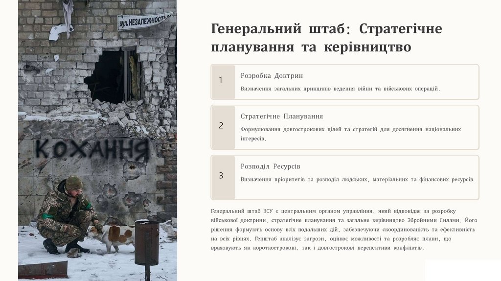 на всіх рівнях. Генштаб аналізує загрози, оцінює можливості та розробляє плани, що