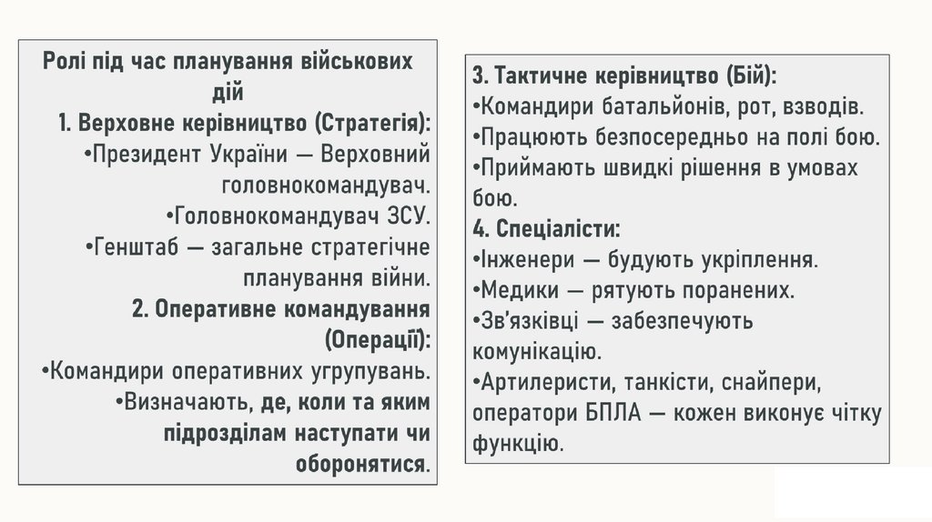 формуваннями під час бойових дій. Їхня роль є ключовою у переведенні стратегічних намірів у дієві
