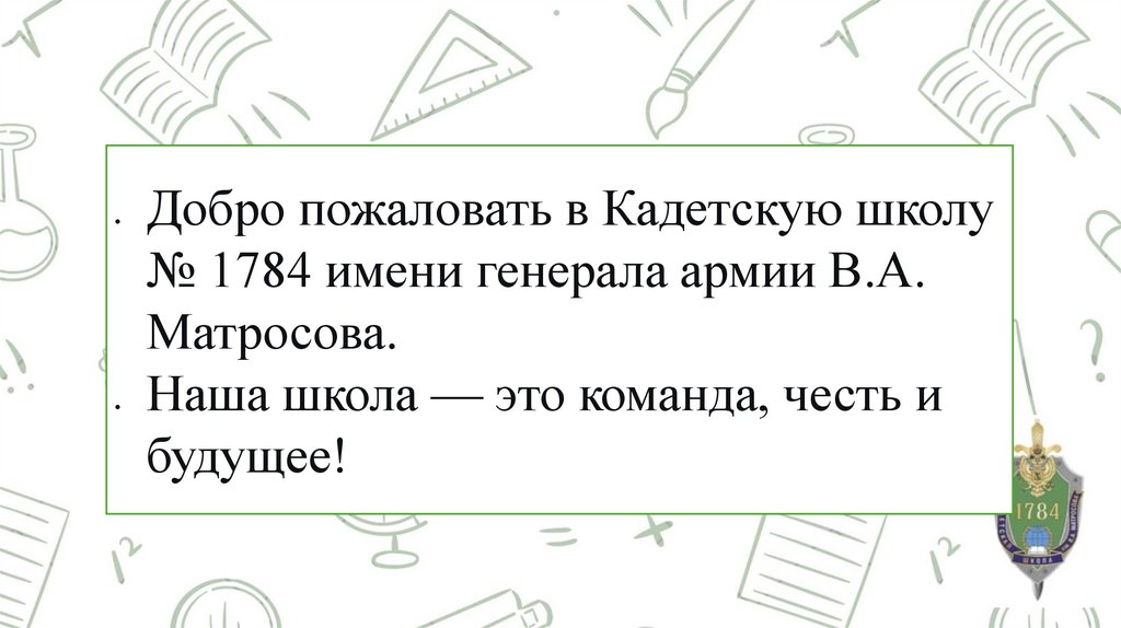 Добро пожаловать в Кадетскую школу№ 1784 имени генерала армии В.А.