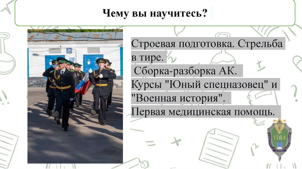 Чему вы научитесь?Строевая подготовка. Стрельба