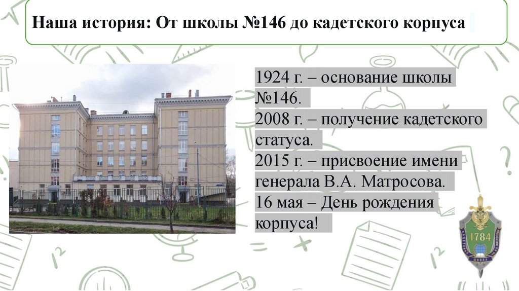Наша история: От школы №146 до кадетского корпуса1924 г. – основание школы