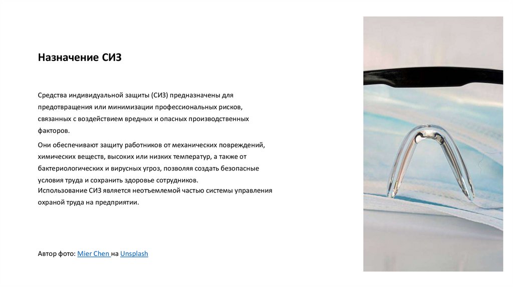 Назначение СИЗСредства индивидуальной защиты (СИЗ) предназначены для