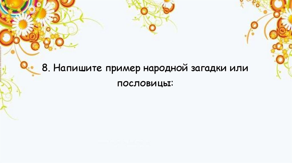 8. Напишите пример народной загадки илипословицы: