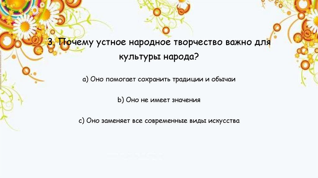 3. Почему устное народное творчество важно длякультуры народа?