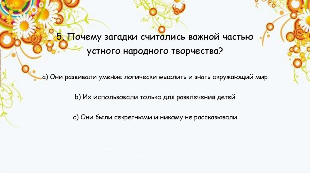 5. Почему загадки считались важной частьюустного народного творчества?