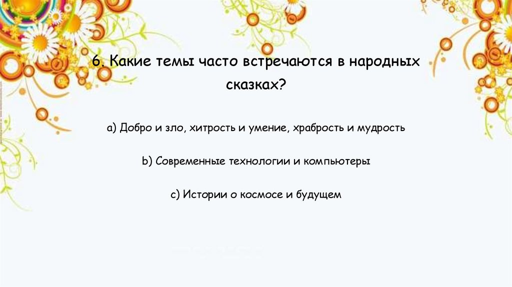 6. Какие темы часто встречаются в народныхсказках?