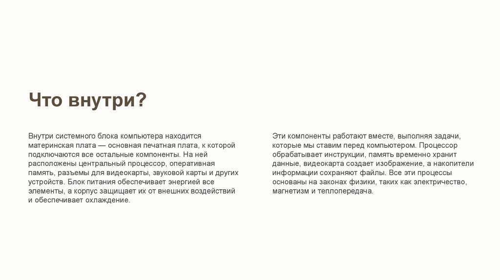 Что внутри?Внутри системного блока компьютера находится