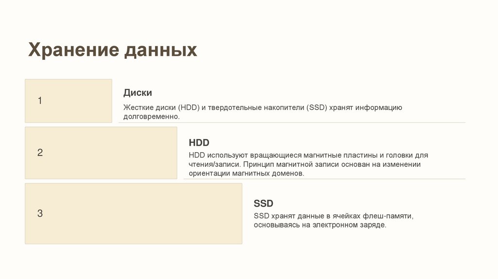 Жесткие диски (HDD) и твердотельные накопители (SSD) хранят информацию