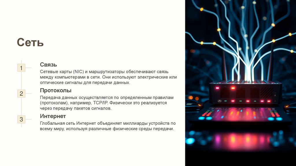электрических сигналов в процессоре до распространения света в