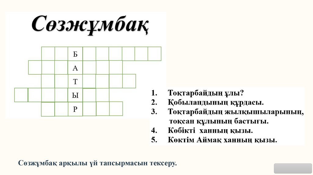 Сөзжұмбақ арқылы үй тапсырмасын тексеру.6.