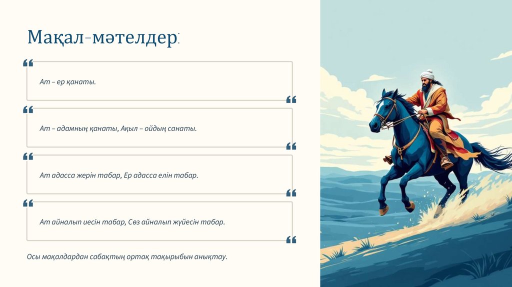 Жылқы туралы мақал-мәтелдер жазыңыз.