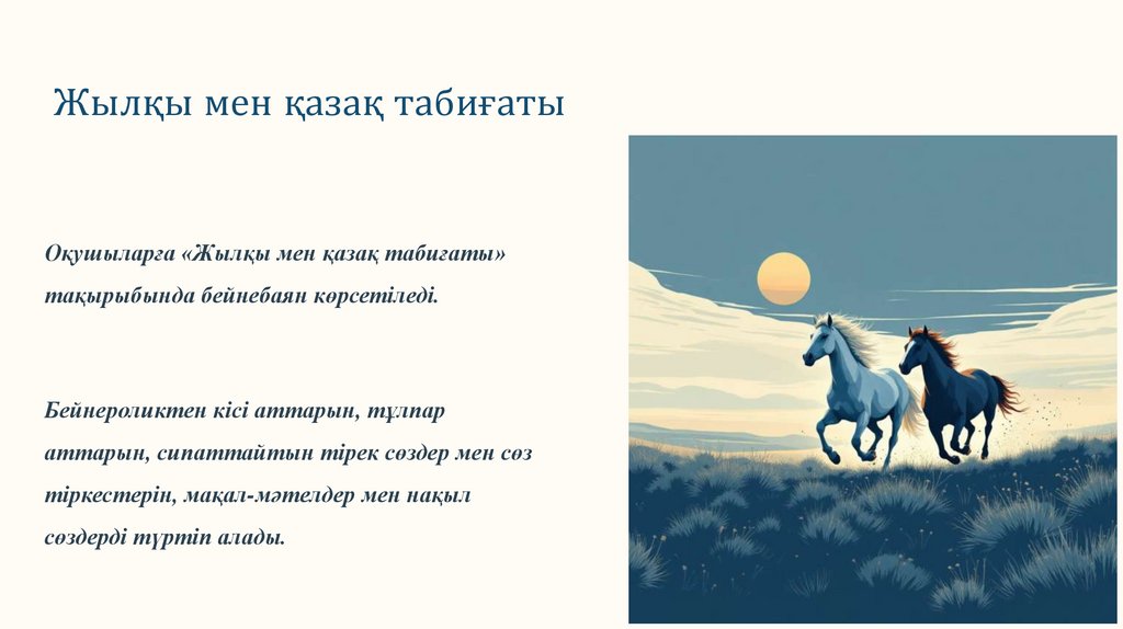 Жылқы мен қазақ табиғатыОқушыларға «Жылқы мен қазақ табиғаты»