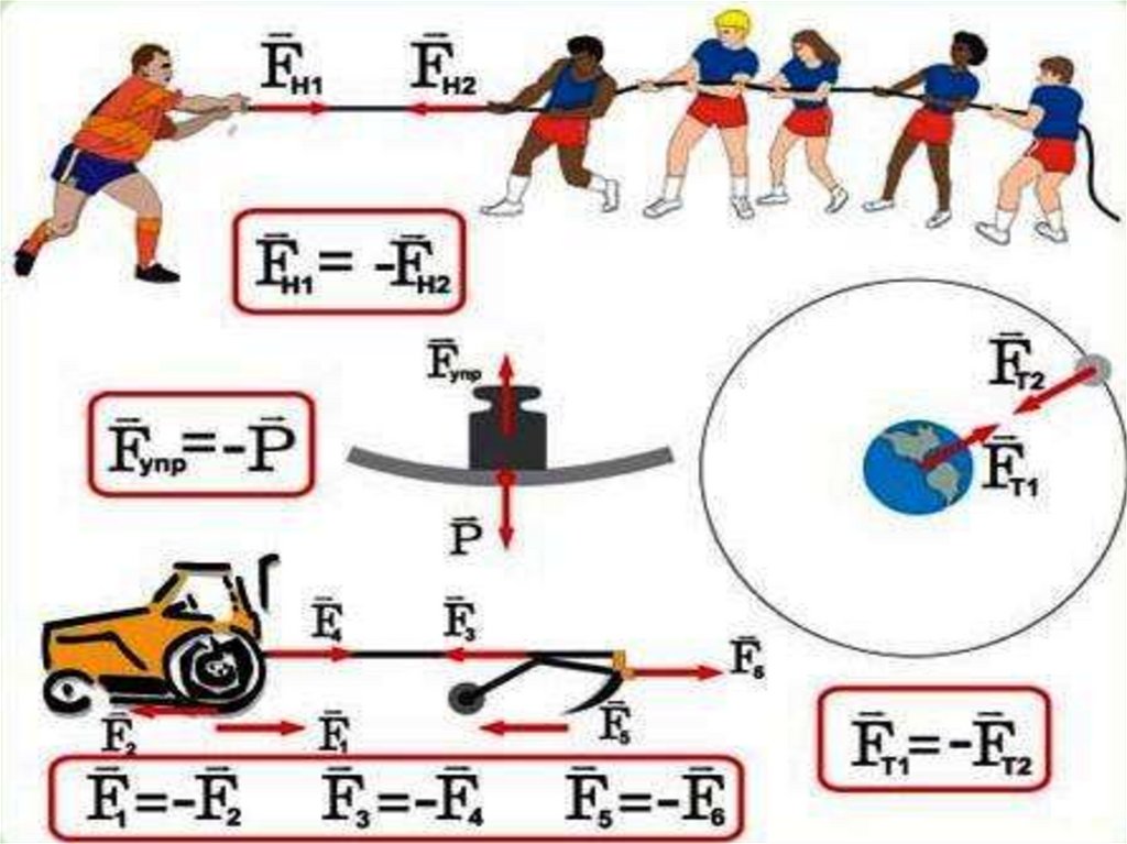 Тела взаимодействуют с силами, равными помодулю и направленными вдоль одной