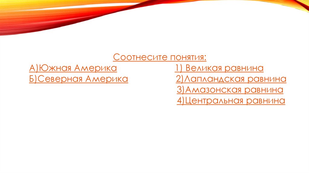 Соотнесите понятия:А)Южная Америка