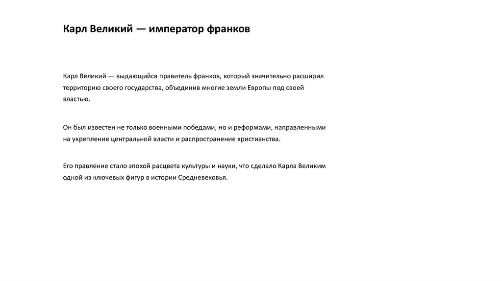 Карл Великий — император франковКарл Великий — выдающийся правитель франков, который значительно расширил