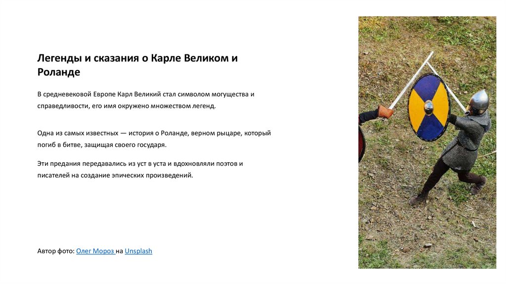 формирование Европы. Особое внимание будет уделено Роланду и битве