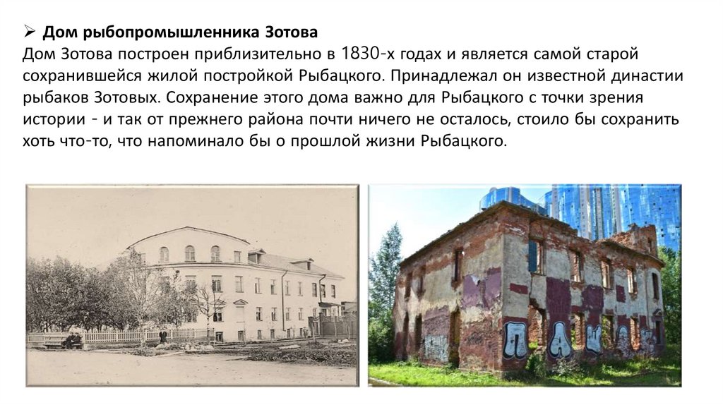 рыбаков Зотовых. Сохранение этого дома важно для Рыбацкого с точки зрения