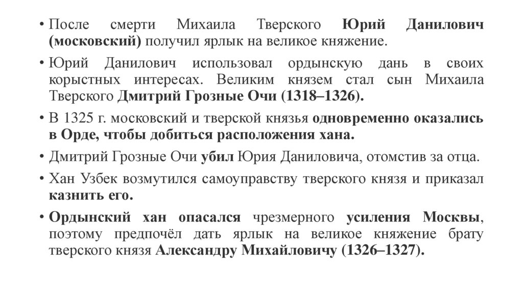 • 1. Хан Золотой Орды считался верховным правителем русскихземель. У хана нужно было получить ярлык на княжение. Ярлы́к (тюрк.
