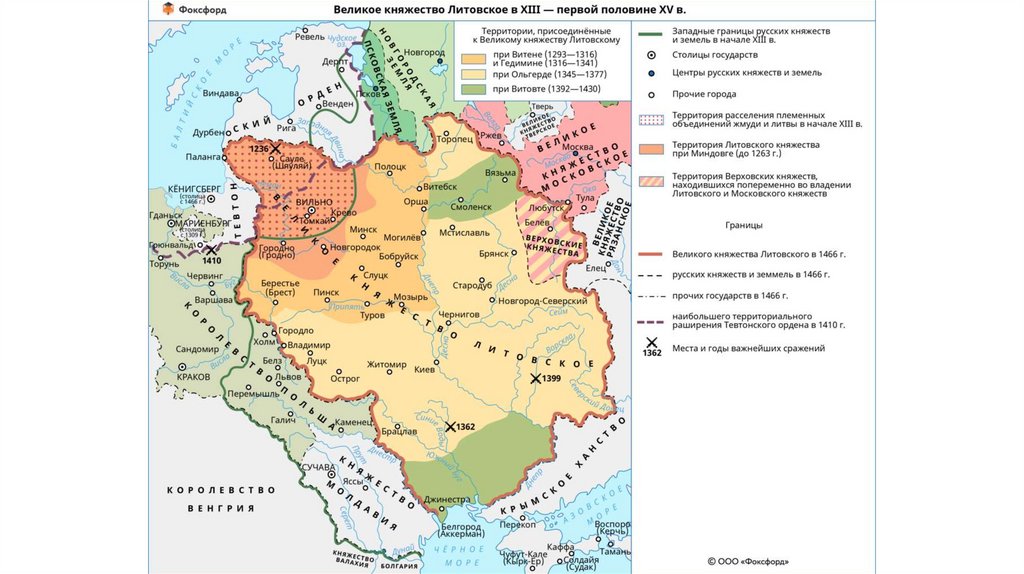 • В Западной и Юго-Западной Руси в XIII-XIV вв. важным факторомстановится Великое княжество Литовское, которое постепенно