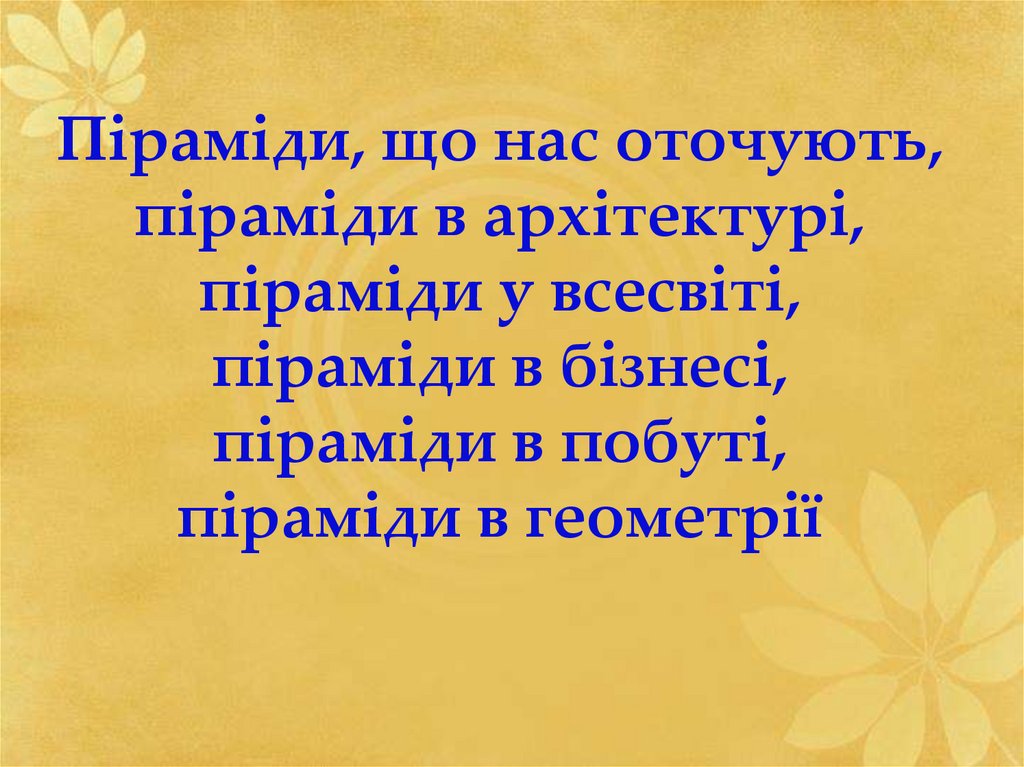 16. Піраміди, що нас оточують, піраміди в архітектурі, піраміди у всесвіті, піраміди в бізнесі, піраміди в побуті, піраміди в