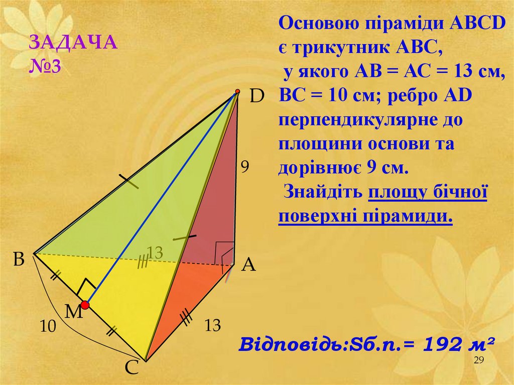 Основою піраміди є ромб, сторона якогоЗАДАЧА дорівнює 5 см, а одна з діагоналей 8 см.